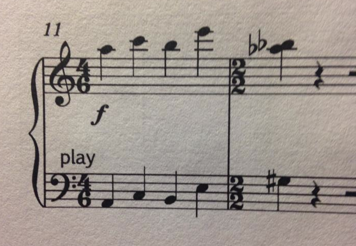 Recently a friend posted a photo on Facebook of a bar of music she encountered and wasn’t sure how to count it. It was a bar of 4/6, and later in the discussion she posted another one of 5/6. This thread took a lot of directions, such as why the composer would write this, is there a better way to write it, what performance implications and psychological effects notation has, and how to actually count the bars in question. While all points are very valid and interesting discussions, I want to focus on the last one. How does one actually count a 4/6 or 5/6 bar? The problem is that in Western music, we’re subject to thinking of everything in duples of four- 4/4, 2/2, 6/8- but never (at least not until the later 20th century) in “irrational” time signatures. So this post will discuss how to deal with this.
